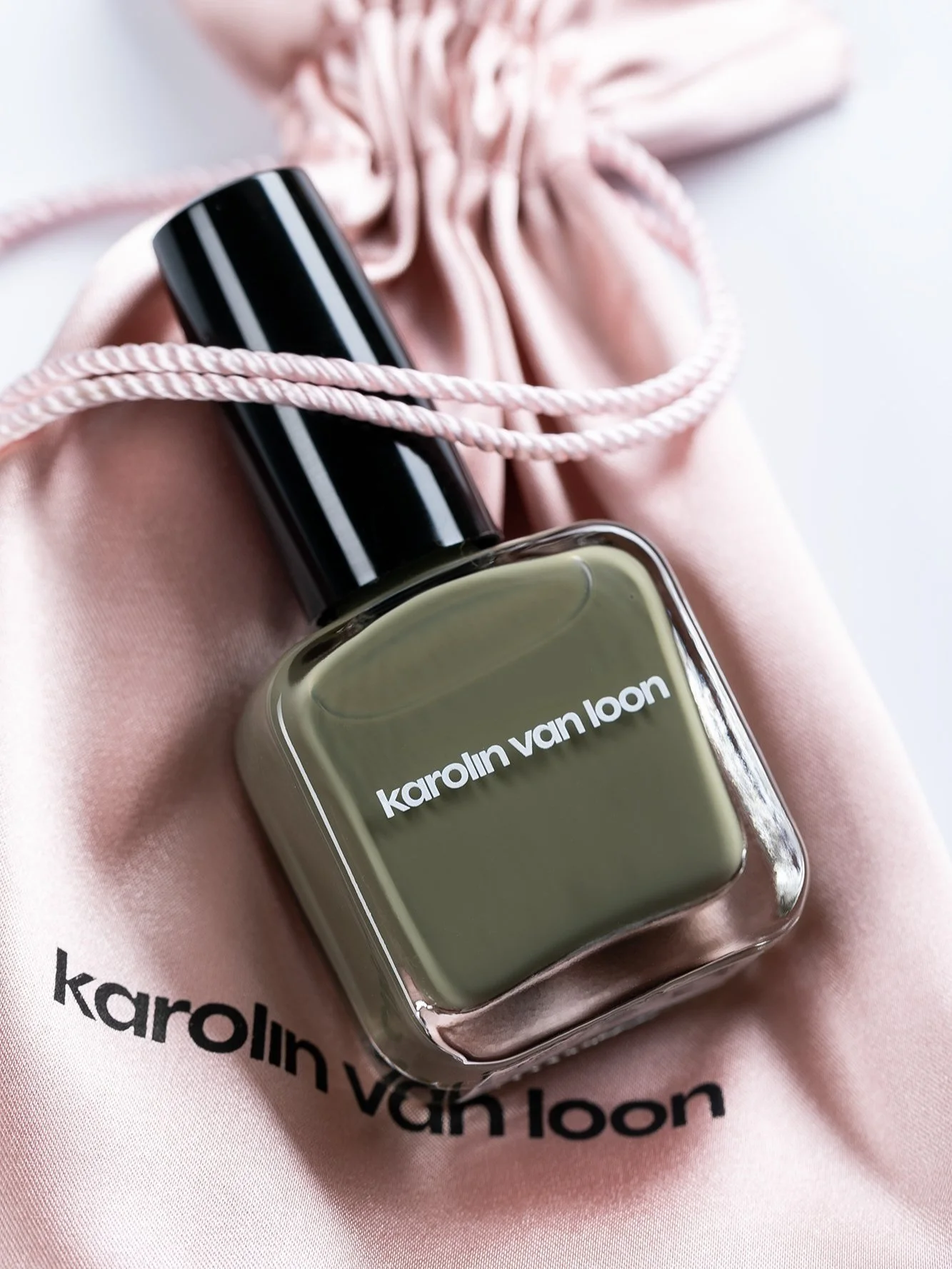 De nagellakjes worden verstuurd in een zacht satijnen zakje waar je later je juwelen veilig in kunt opbergen, thuis of op vakantie. Het flesje zelf knipoogt met zijn ronde hoeken naar de natuurlijke vormen van haar oorringen, armbanden, ringen en halskettingen. De nagellakjes zijn ook afzonderlijk verkrijgbaar in de webshop van Karolin Van Loon en bij een fijne selectie verkooppunten.