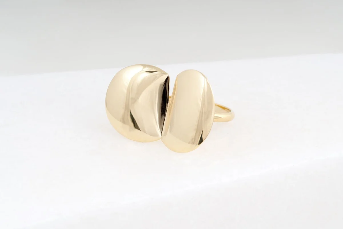 Elisabeth Leenknegt groeide samen met haar broer op in een huis vol kunst en omringd door makers, waaronder haar vader en kunstenaar Jan Leenknegt. Naast glaskunst creëert hij ook houtsculpturen, die Elisabeth vertaalde naar een collectie gouden oorstekers en een ring.