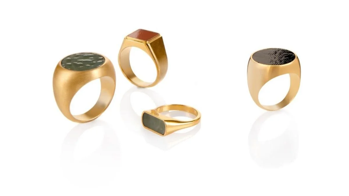 'Inflated' zegelringen beschikbaar in (verguld) zilver en 18K geel-, wit- en rosegoud