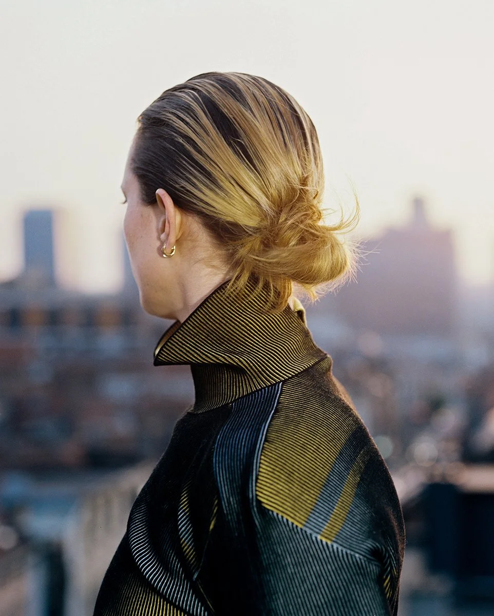 Lila John’s duidelijke kijk op materialen, pasvorm en het maakproces geven het merk een eigen onnavolgbare identiteit. Alle items zijn gebreid in een mix van organisch katoen met lyocell, een ecologische vezel die zacht en glad aanvoelt en zich aan temperatuurschommelingen aanpast. Door telkens twee kleuren garens met elkaar te combineren ontstaat er een moirépatroon dat het licht in verschillende richtingen weerkaatst. Dit levert een golvend, bijna waterachtig effect op dat telkens anders oogt.